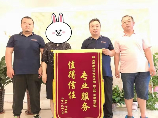 8月11日,金地小區(qū)葉女士為美然裝飾送來錦旗,對工程主管張會明及設(shè)計師王林浩給予肯定。