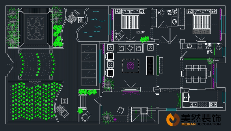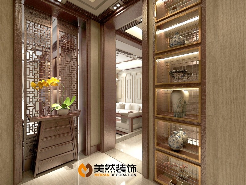 本案追求高雅簡潔卻又低調(diào)的淡雅氣質(zhì)。這是一個三層的別墅,一層是起居室和餐廳,二層則是設(shè)計作為十分私密的私人空間,是主人家的臥室和主要活動空間,生活得精致通常是以舒適作為基本,然后是周到。地下一層是娛樂空間。運(yùn)用現(xiàn)代東方主義設(shè)計,以耐人尋味的紅胡桃色作為主背景,一改往日繁瑣冗雜的修飾手法,用沉穩(wěn)的筆觸勾勒出溫婉典雅氣質(zhì),糅合空間的色調(diào),一切仿佛渾然天成。相近色系完美的跳躍搭配使得空間有著優(yōu)雅的變化,隨處都展示著主人超脫的審美觀和悠閑淡然的氣質(zhì)