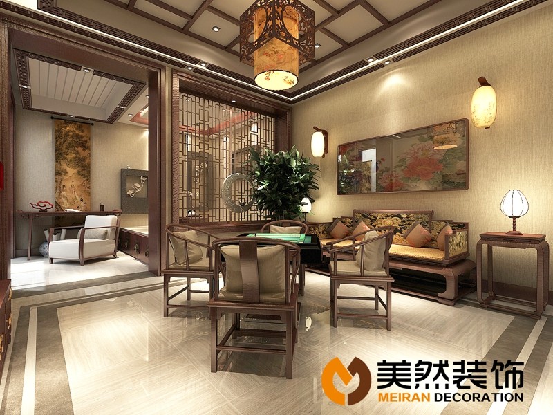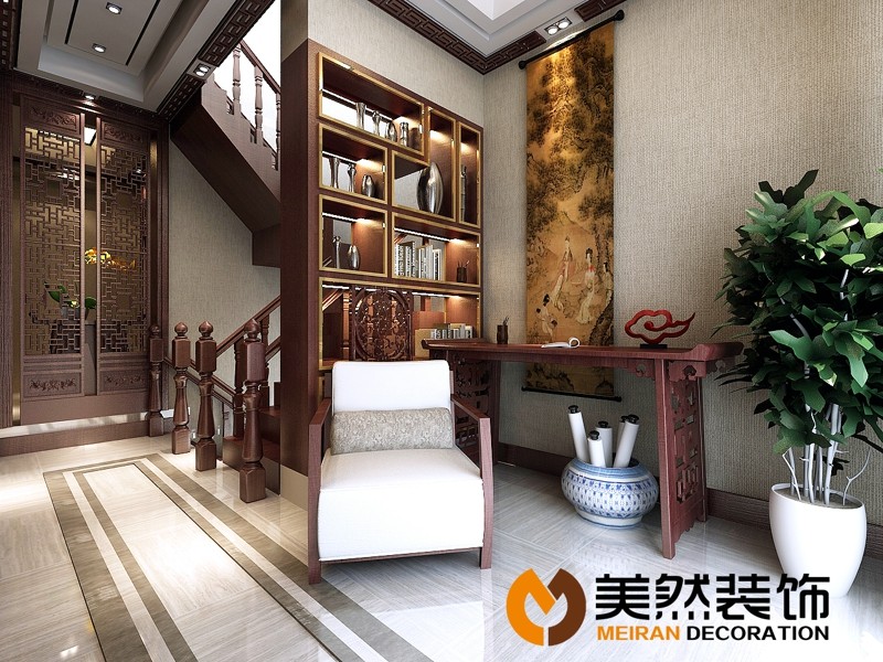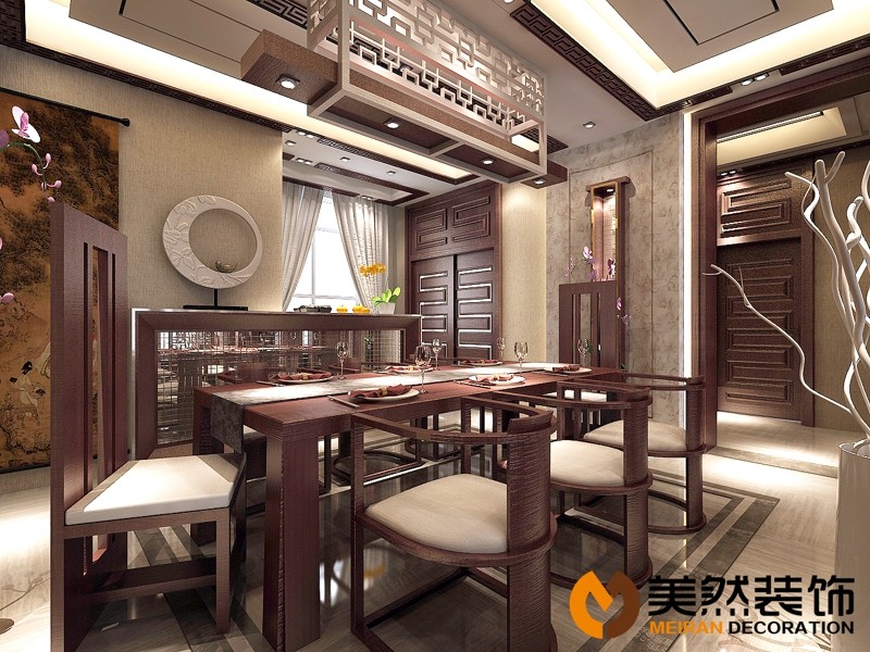 本案追求高雅簡潔卻又低調(diào)的淡雅氣質(zhì)。這是一個三層的別墅,一層是起居室和餐廳,二層則是設(shè)計作為十分私密的私人空間,是主人家的臥室和主要活動空間,生活得精致通常是以舒適作為基本,然后是周到。地下一層是娛樂空間。運(yùn)用現(xiàn)代東方主義設(shè)計,以耐人尋味的紅胡桃色作為主背景,一改往日繁瑣冗雜的修飾手法,用沉穩(wěn)的筆觸勾勒出溫婉典雅氣質(zhì),糅合空間的色調(diào),一切仿佛渾然天成。相近色系完美的跳躍搭配使得空間有著優(yōu)雅的變化,隨處都展示著主人超脫的審美觀和悠閑淡然的氣質(zhì)