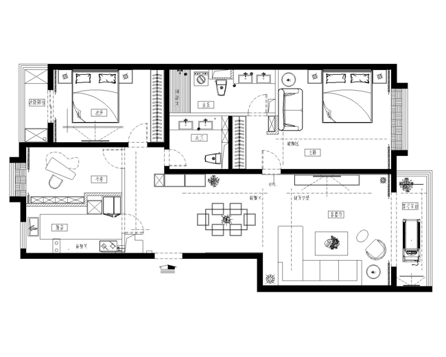 本案位于北京崇文門新世界家園5-3-1001,建筑面積141㎡,為三室兩廳格局。